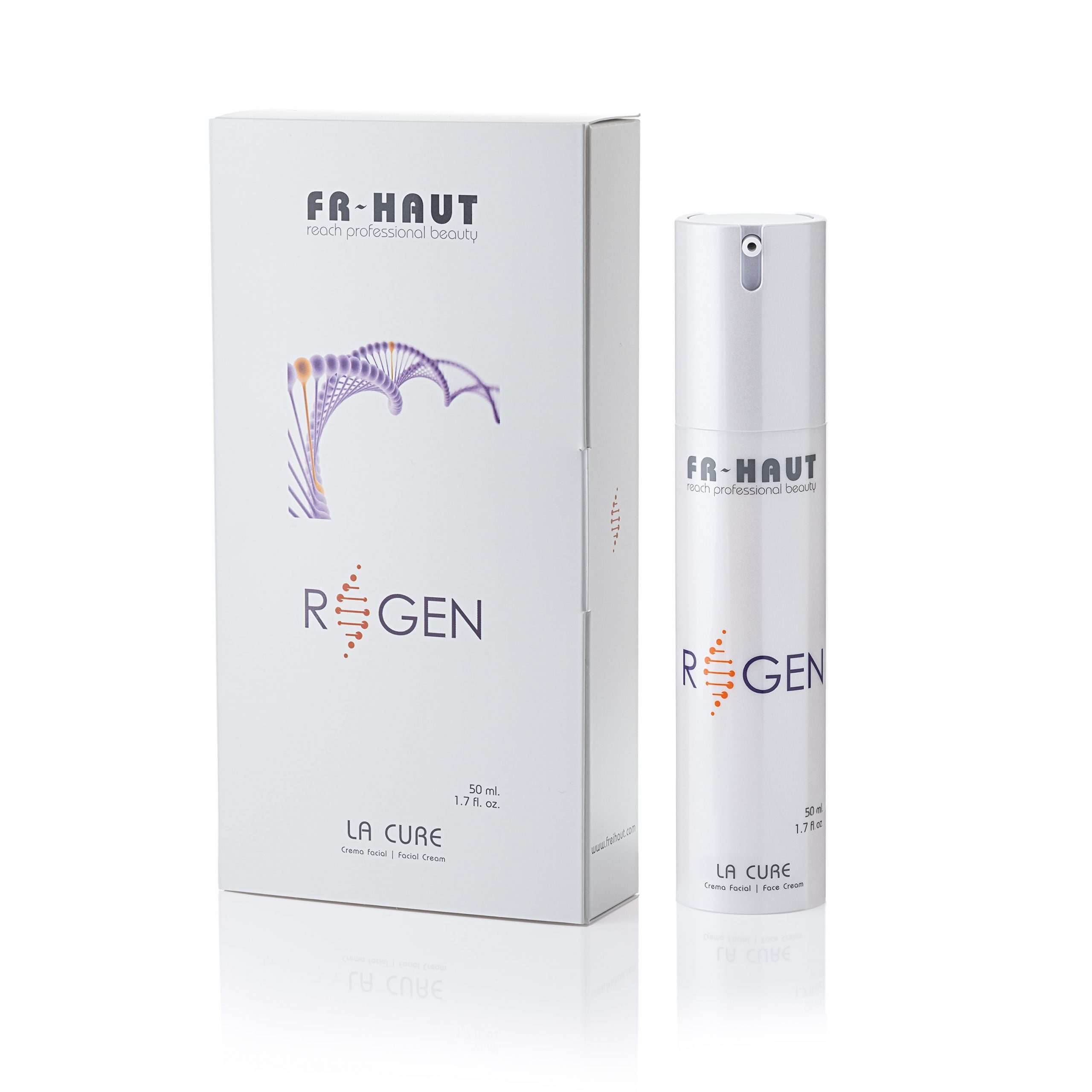 RE-GEN LA CURE is a revolutionary night treatment designed to regenerate mature skin from within. Powered by REGESTRIL™, it targets deep wrinkles and skin imperfections, delivering visible results even on scars. The formula features advanced thermo-active ingredients that induce a gentle warming sensation, boosting microcirculation and cellular metabolism to maximize the repair process.